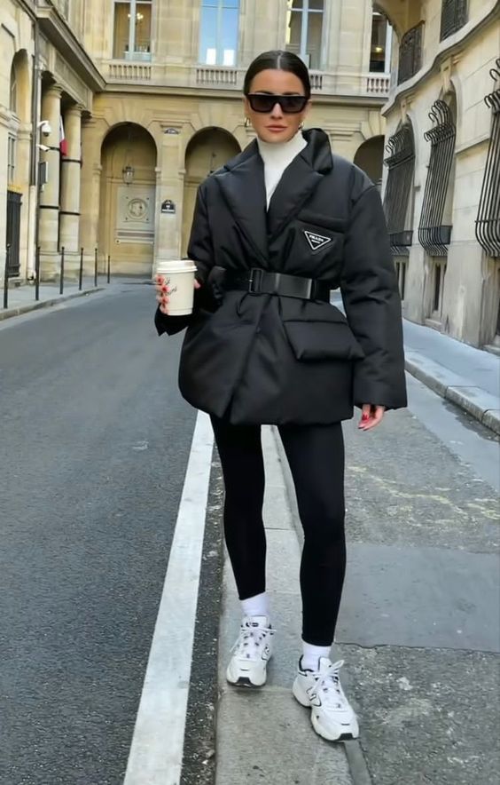 Black Prad Belted Puffer Coat